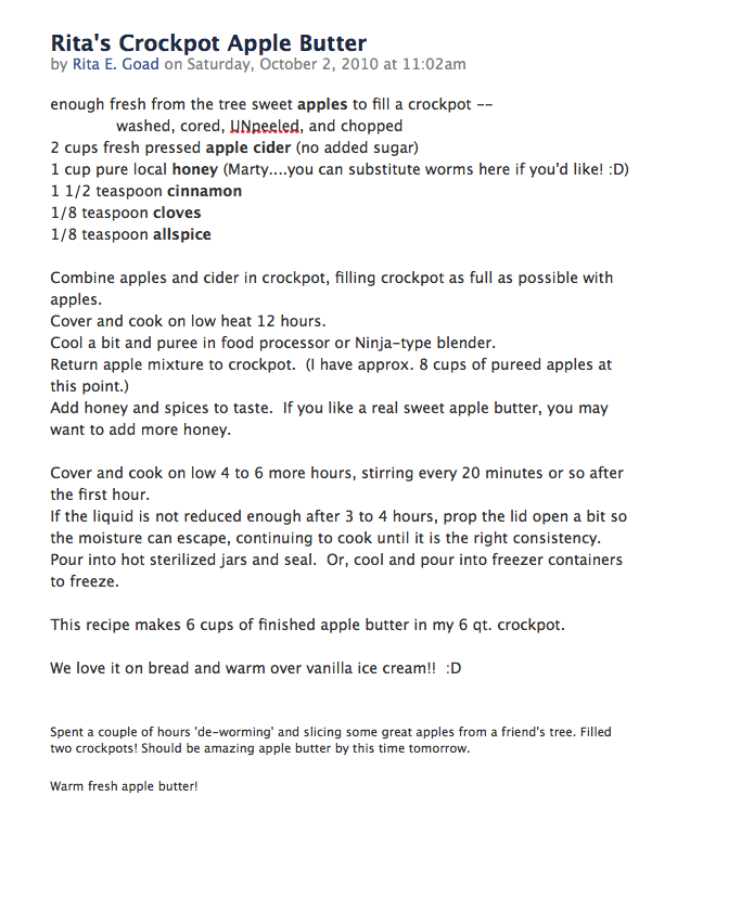 Rita's crockpot apple butter
