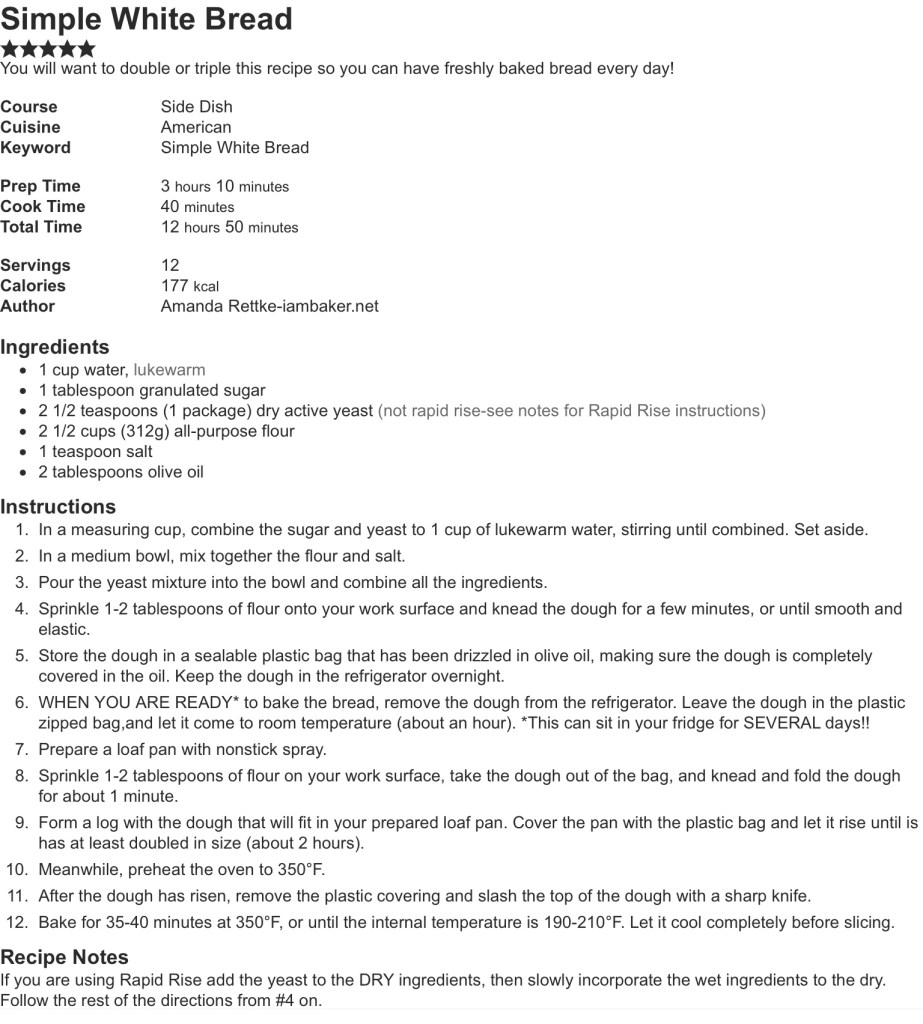 Simple homemade white bread