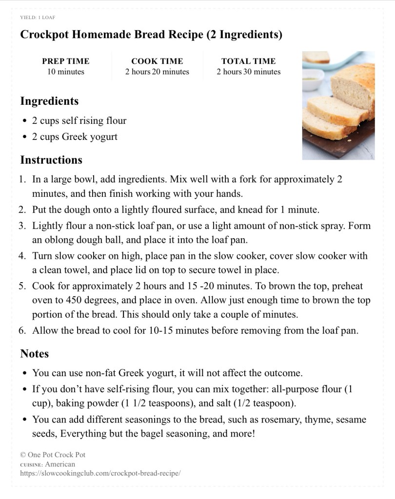 Crock pot bread
